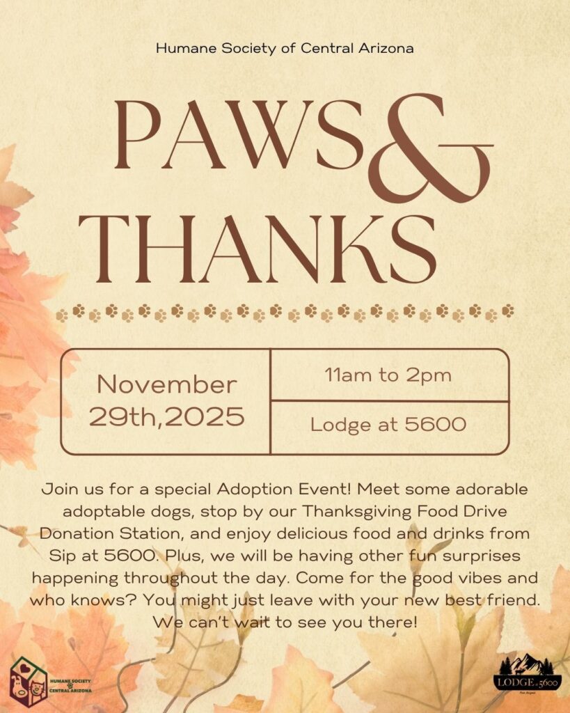 Join us for a special Adoption Event! Meet some adorable adoptable dogs, stop by our Thanksgiving Food Drive Donation Station, and enjoy delicious food and drinks from Sip at 5600. Plus, we will be having other fun surprises happening throughout the day. Come for the good vibes and who knows? You might just leave with your new best friend. We can’t wait to see you there!