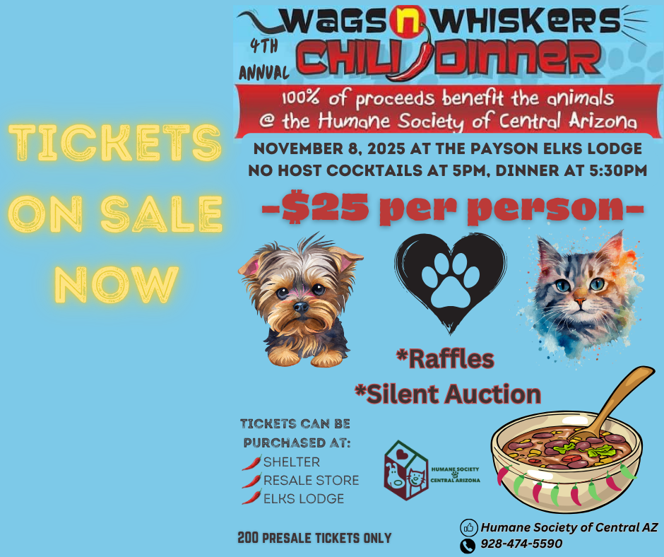 SAVE THE DATE! Chili Dinner Fundraiser Event Details Date: November 8, 2025 5:00 pm – 8:00 pm 4th Annual Wags n Whiskers Chili Dinner Fundraiser November 8, 2025