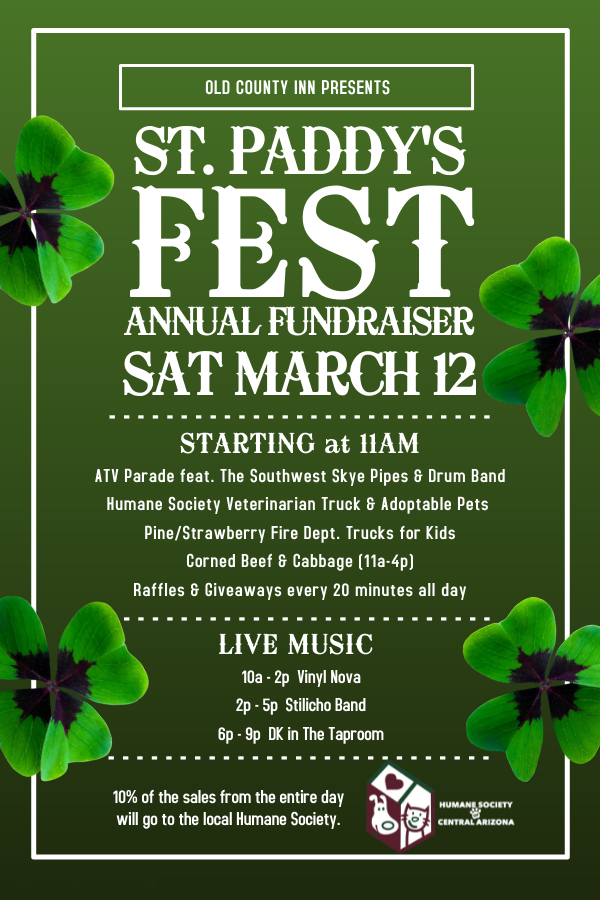 Food, fun, and adoptable dogs…what more could a person want?  Join us for Old County Inn’s Annual Fundraiser in Pine, AZ!
