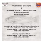This is our 6th Annual Spring Event with the Payson Fly Casters! Please bring any fishing equipment donations on Friday, March 13 and Saturday, March 14 between 8am t0 12pm Fishing Equipment Sales will be on Friday, March 20 and Saturday, March 21 from 8am to 12pm
